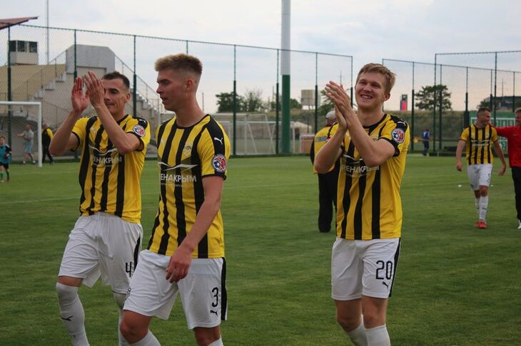 «Евпатория» решила все свои проблемы еще в первом тайме. Два мяча в ворота Азамата Томаева забили Владислав Семенов и Олег Плиев.