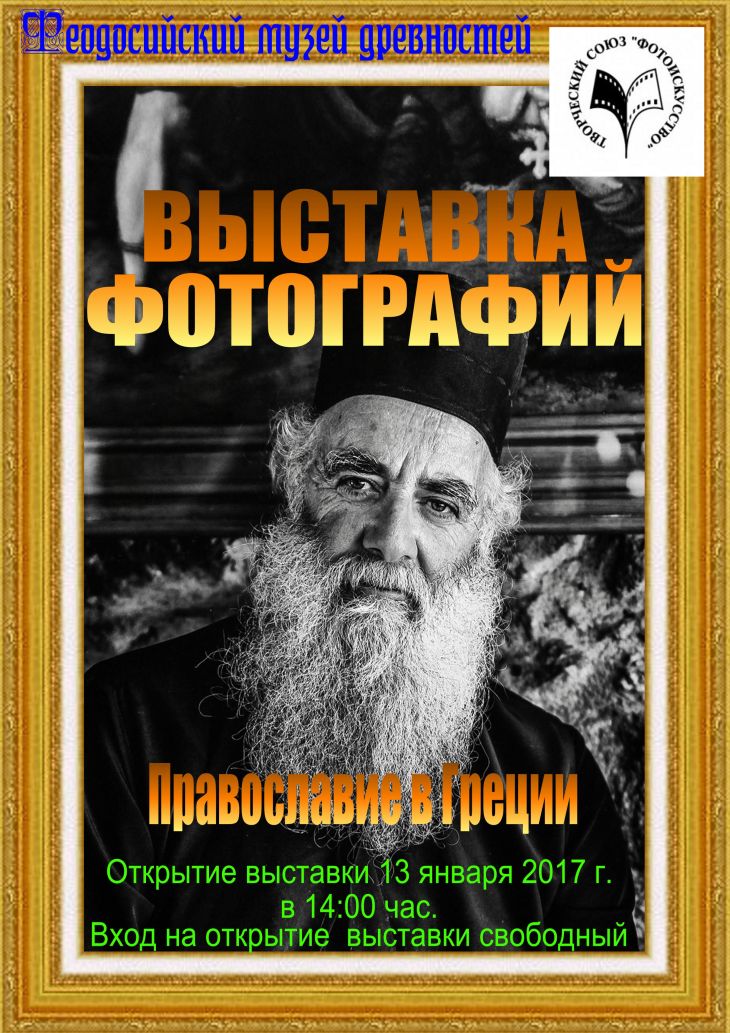 13 января в Феодосийском музее древностей откроется выставка художественной фотографии «Православие в Греции». По словам директора музея Александра Родионова, тематическая выставка фотохудожников Греции была подготовлена специально для России. С фотографиями уже ознакомились жители Нижнего Новгорода.