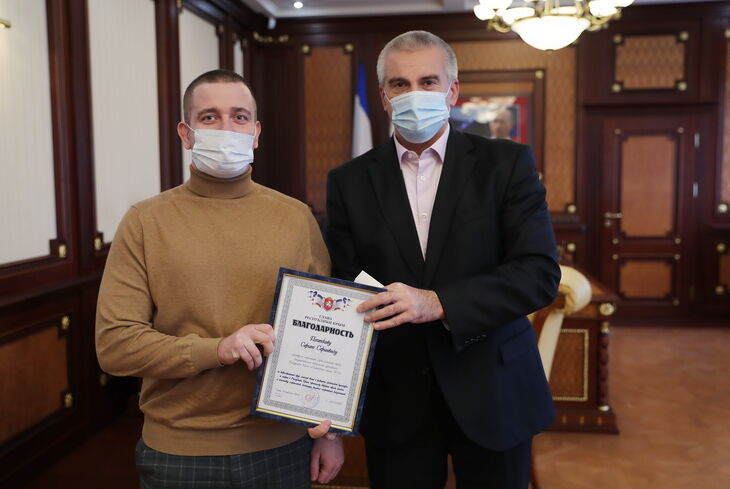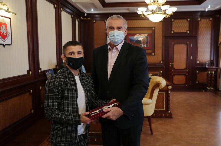 Глава Республики Крым Сергей Аксёнов вручил мастеру спорта международного класса Эмину Сефершаеву отличительный знак Главы Республики Крым «Часы от Главы Республики Крым».