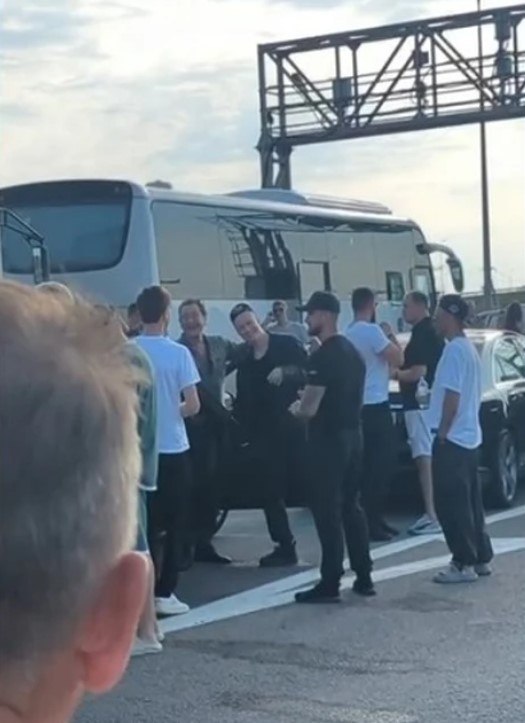 Оба возвращались с концертов в Крыму. SHAMAN выступил в Феодосии, Симферополе, Ялте и Севастополе. Лепс дал большой сольник в Ялте. Исполнители пересеклись в 6 утра, когда их автобусы встали в очередь на мост, и естественно, не остались незамеченными.