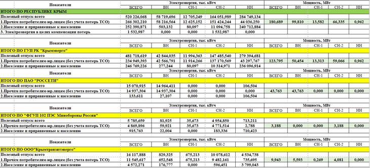 Информация ГУП РК «Крымэнерго» об объеме фактического полезного отпуска электроэнергии и мощности по тарифным группам в разрезе территориальных сетевых организаций по уровням напряжения, в декабре 2023 года