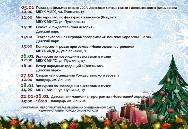 Праздничные мероприятия для взрослых и детей в крымской столице будут проходить до 8 января.