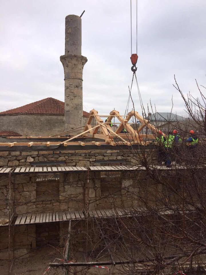 «В мечети Шукурулла-Эфенди, которая входит в состав комплекса, уже залит армированный пояс на стенах, что позволило их укрепить. Разработана и одобрена уникальная методика инъектирования швов в каменной кладке, с помощью которой щели и трещины в стенах под давлением заполняются специальным составом. Смонтированы конструкции для дальнейшей установки кровли мечети», — отметил Филонов.