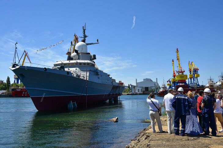 Глава Крыма принял участие в церемонии спуска на воду малого ракетного корабля проекта 22800 «Циклон» на судостроительном заводе «Залив».