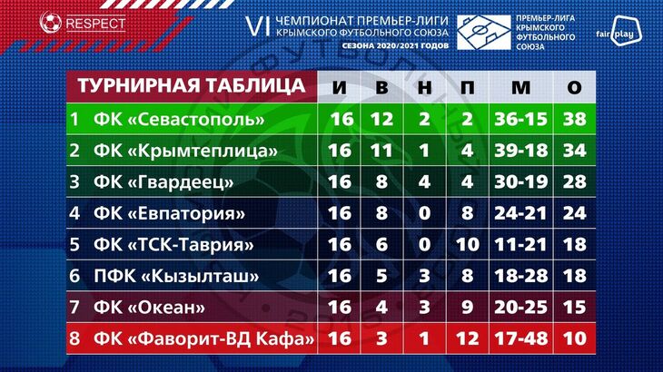 Таблицу Премьер-лиги КФС по-прежнему возглавляет «Севастополь». «Крымтеплица» сократила отставание от лидера до четырех очков. «Гвардеец» замыкает тройку лучших команд Премьер-лиги.