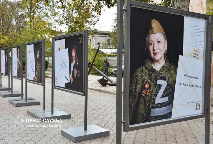 В Евпатории открылась уличная фотовыставка «Жена и мать Героя. Крым», посвященная женщинам, чьи родные являются участниками специальной воен...