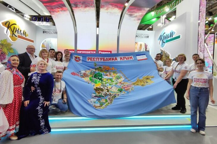 На Международной выставке-форуме «Россия» презентовали вышитую карту Крыма, которую создали к десятой годовщине Крымской весны. Фото: пресс-...