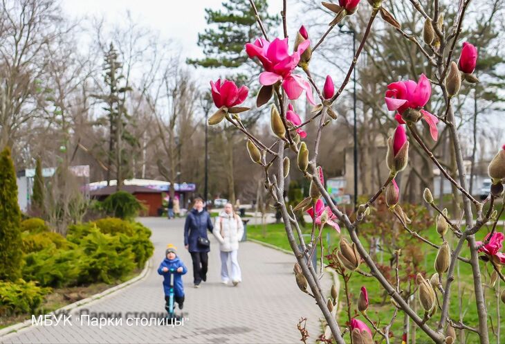 В парке им. Гагарина в Симферополе зацвела лилиецветная магнолия. Об этом сообщили в пресс-службе МБУК «Парки столицы». Фото: Парк...