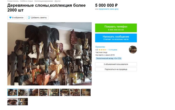Житель Севастополя оценил свою коллекцию деревянных слонов из 2 тысяч экземпляров в 5 миллионов рублей и теперь продаёт её на одном из попул...