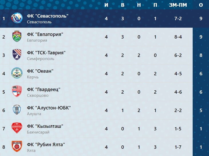 Турнирная таблица Премьер-лиги Крымского футбольного союза