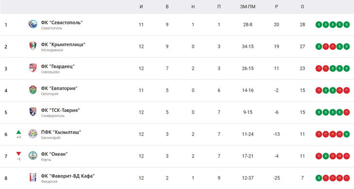 Турнирная таблица Премьер-лиги Крымского футбольного союза
