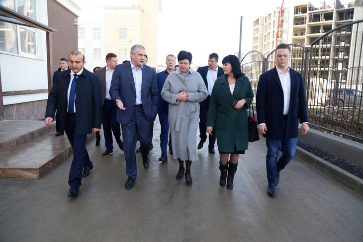 В ходе мероприятий Главу республики сопровождали заместитель Председателя Совета министров Республики Крым Евгений Кабанов, заместитель Председателя Совета министров РК Елена Романовская, заместитель Председателя Совета министров РК Игорь Михайличенко, министр образования, науки и молодежи РК Валентина Лаврик, министр строительства и архитектуры РК Михаил Храмов, другие.
