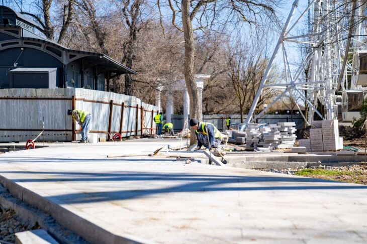 На набережной Терешковой в Евпатории укладывают гранитную плитку