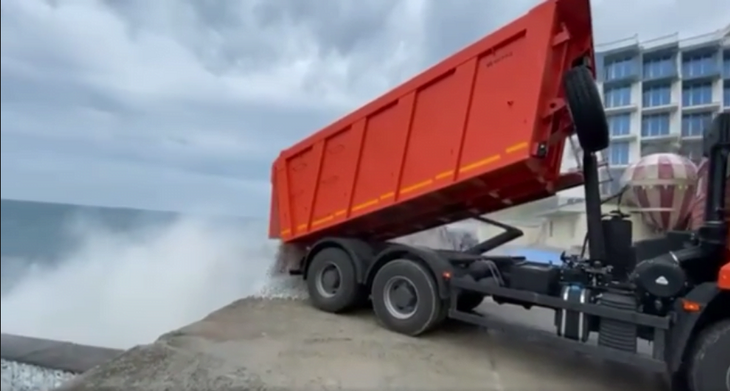 По просьбе жителей Алупки на пляж «Лазурный берег» в Алупке высыпали два КАМАЗа гальки, но официально открыт в этом сезоне он всё равно не будет – специалисты признали его аварийным.