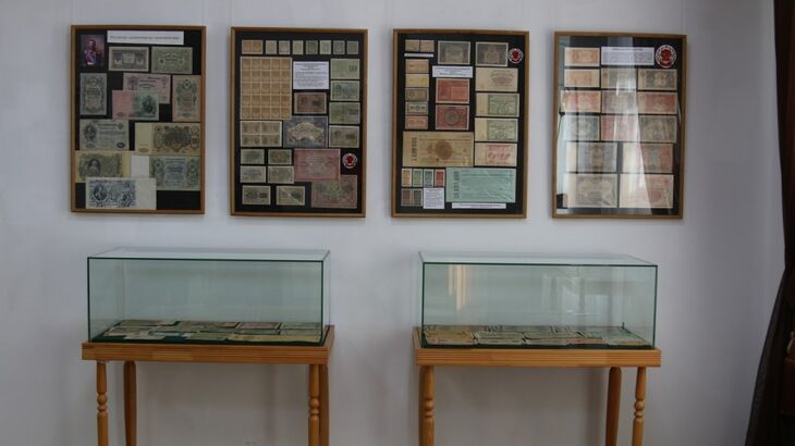 Экспозиция включает коллекционные монеты и банкноты, ценные бумаги, сберегательные книжки, лотерейные билеты, выпускавшиеся в обращение в Советской России и СССР с 1921 по 1991 годы.
