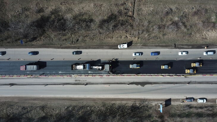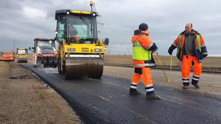 Сегодня специалисты АО «ВАД» приступили к укладке выравнивающего слоя на участке трассы Джанкой — Симферополь. Фото: пресс-служба крым...