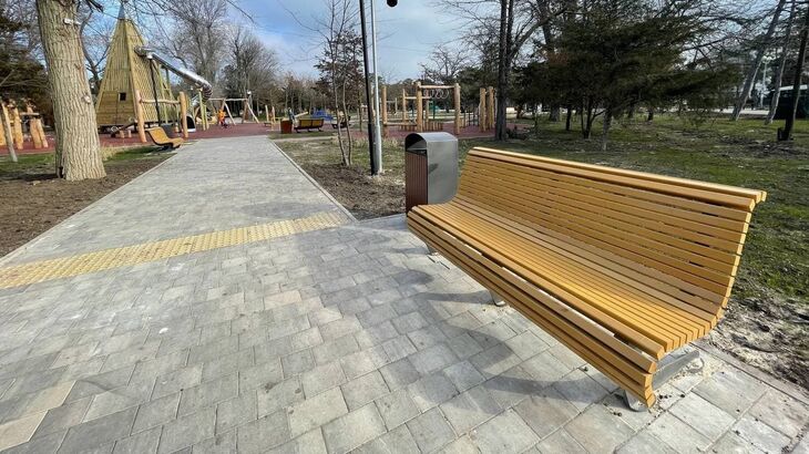 Все работы по созданию новой детской игровой площадки и капитальному ремонту аллеи, расположенных на территории парка им. Фрунзе в Евпатории...