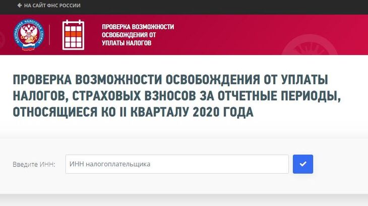 На странице сервиса достаточно ввести ИНН организации или индивидуального предпринимателя и выбрать применяемую налогоплательщиком систему налогообложения, после чего сервис выведет информацию о возможности применения пониженных тарифов страховых взносов по ставке 0%, а также о платежах за отчетные периоды второго квартала 2020 года, от которых освобождается налогоплательщик.