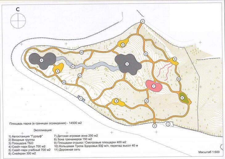 Зона отдыха будет расположена в районе улицы Приветной. Здесь планируется установить скейт – площадки, детскую площадку, кольцевую тропу здоровья и смотровые площадки.