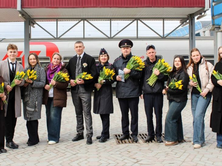 Накануне Международного женского дня сотрудники транспортной полиции и волонтёры «Дома молодёжи» устроили праздник для пассажирок железно...