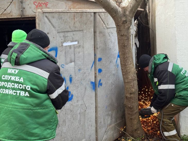 Сегодня сотрудники службы городского хозяйства убирают два металлических гаража, расположенных во дворе многоквартирных домов по ул. Генерал...