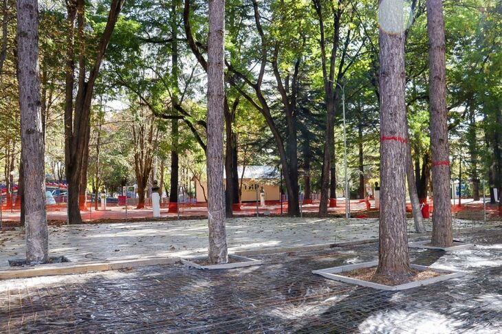 Уже выполнено переустройство и вынесение сетей канализации, водопровода, электроснабжения для туалета, установка видеонаблюдения и освещения, установка бортового камня, подготовка под бетонирование.