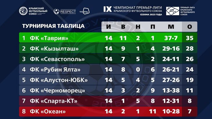 Турнирная таблица Премьер-лиги Крымского футбольного союза