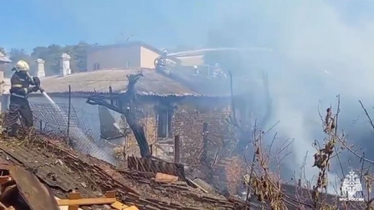 В Феодосии тушат пожар в двухэтажном частном доме. На месте происшествия работают два отделения 19 пожарно-спасательной части, одно отдел...