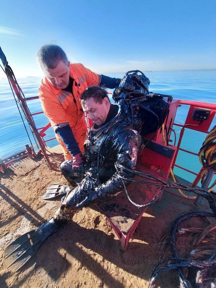 Более 150 часов провели под водой водолазы, обследуя затонувшие фрагменты танкеров в Черном море. Водолазы погружаются на глубины до 24 метр...