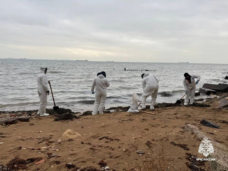 В Ленинском районе Крыма мазутом загрязнено 18 километров побережья. Специалисты МЧС очищают береговую линию от села Яковенково до заповедни...