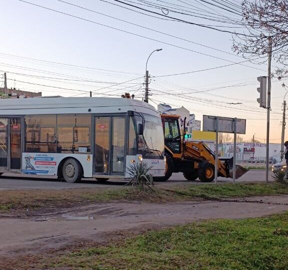 В Симферополе на выезде с улицы Кубанская столкнулись троллейбус и трактор. Об этом сообщили очевидцы. В результате а...