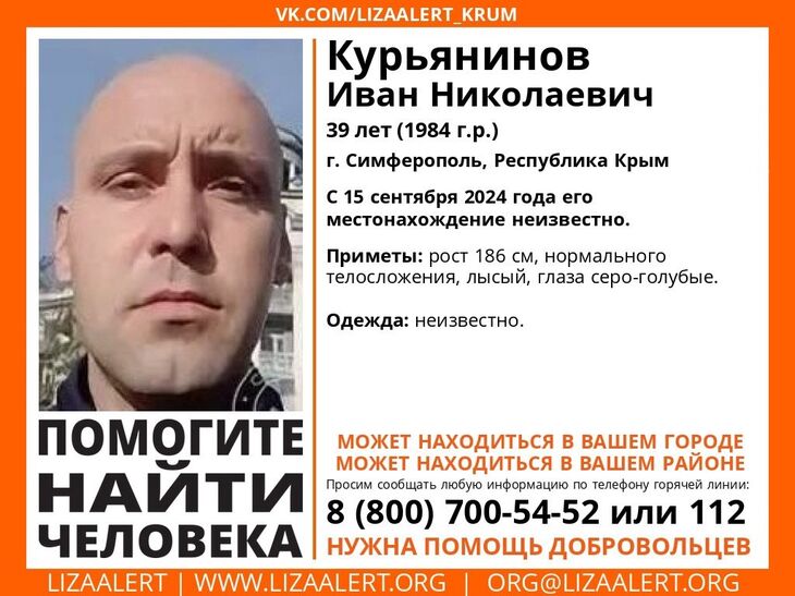В Симферополе пропал 39-летний Иван Курьянинов. Поиски мужчины ведутся с 15 сентября, сообщает поисково-спасательный отряд «Лиза Алерт» Крым...