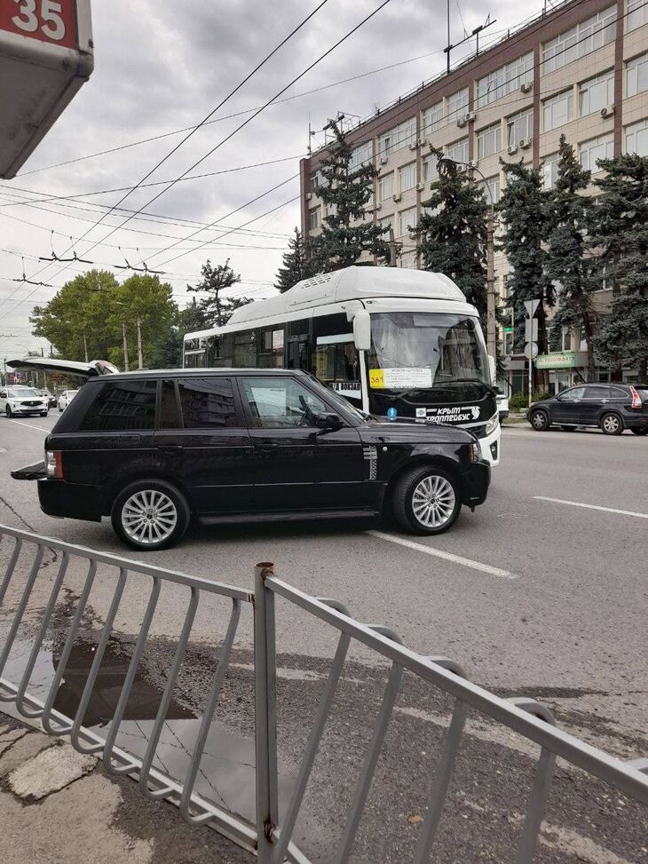 В Симферополе на пересечении улиц Набережная и Гагарина произошло столкновение рейсового автобуса и автомобиля Range Rover. Фото: соцсети По...