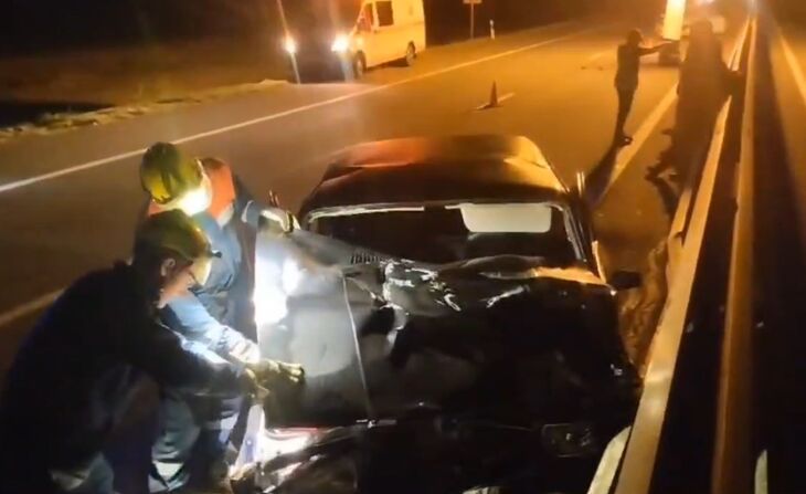 Два человека пострадали в Ленинском районе в результате столкновения легковушки с грузовиком. Об этом сообщили в пресс-службе МЧС. Кадр из о...