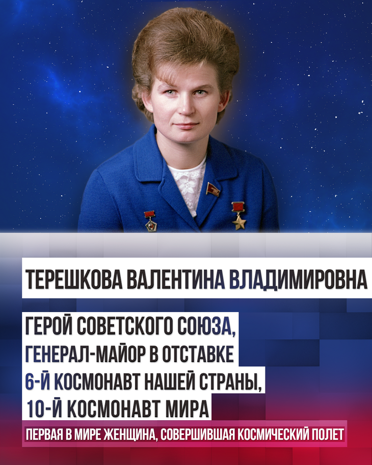 Кроме Валентины Терешковой от нашей страны в космосе побывали ещё пять женщин. На орбиту отправилась Светлана Савицкая, третьей женщиной-космонавтом стала Елена Кондакова, четвёртой – Елена Серова, пятая женщина-космонавт – Анна Кикина.