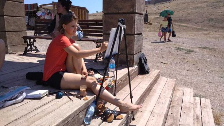 Фото пресс-службы Минкультуры РК.В музее-заповеднике «Судакская крепость» состоялся пленэр «Крымский берег». По словам организатора мероприятия Ольги Севастьяновой, главной темой творческой практики живописцев стала Судакская крепость. Ее величественность, неповторимость и красота определила выбор художников.