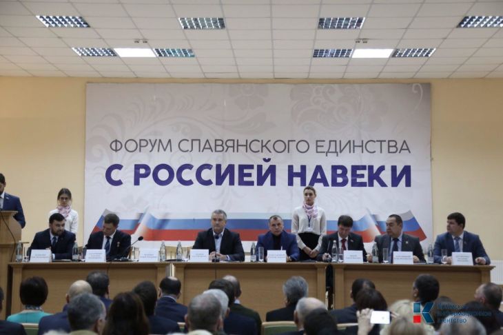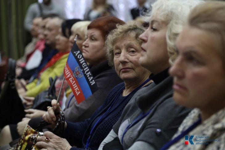 В мероприятии принимали участие первые лица Крыма, ЛНР и ДНР, представители общественности полуострова и студенты.
