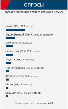 В 2 раза меньше набрали совместными усилиями «родина крымского шампанского» и бывшая обитель генуэзцев – за Судак и Новый Свет проголосовало 16%.