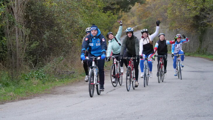— Как всегда каждую осень приезжаем сюда — в «Крымский», чтобы провести начало нашей годичной подготовки. В этот раз у нас собрались четыре состава: основной мужской и женский, резервный мужской и женский, а также юниоры, юниорки и несколько юношей и девушек из числа наиболее перспективных ребят, которые впервые попали в этом году в список сборной. Здесь мы, как правило, занимаемся базовой работой в тренажерном зале: работаем над увеличением мышечной гипертрофии, приростом силовых показателей. Главное — заложить функционал для всего организма, методы простые через тренажерный зал и работу в горах на шоссе. И для этого здесь есть все условия. Силовая работа на шоссе заключается в прохождении отрезков различной длины и градиента. Мы выбираем определенный подъем и в зависимости от задач тренировки либо проходим его равномерно с удержанием каденса, либо проезжаем за минимально возможное время. Такое место есть прямо в г. Алушта, в стороне от основной трассы. На одном участке дороги можно делать 3 вида работы: ускорение под спуск, затяжные подъемы с небольшим уклоном и короткую резкую работу в крутой подъем. 3-4 тренировки в день — это для нас стандарт, — рассказал старший тренер сборной России по велоспорту ВМХ-race Юрий Русаков.