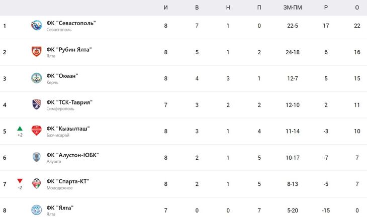 Турнирная таблица Премьер-лиги Крымского футбольного союза
