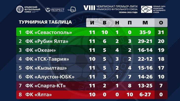 Турнирная таблица Премьер-лиги Крымского футбольного союза
