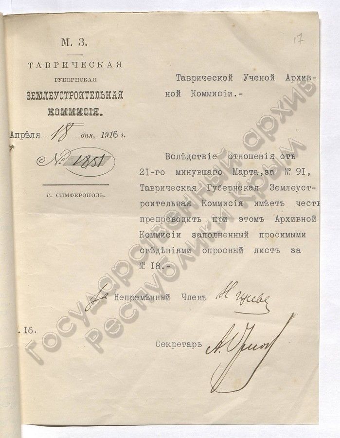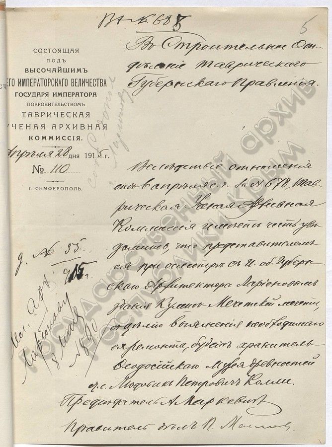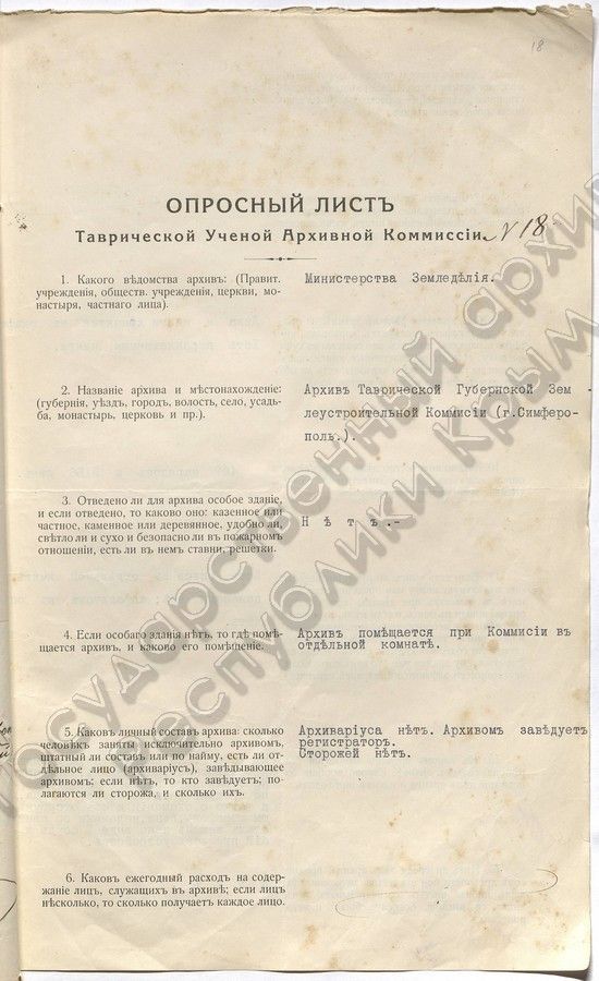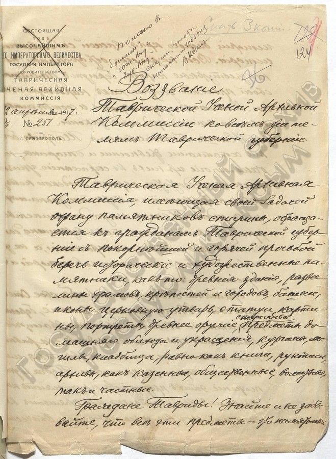 Создание Таврической архивной комиссии в документах. Спецпроект КИА и Госархивной службы Крыма