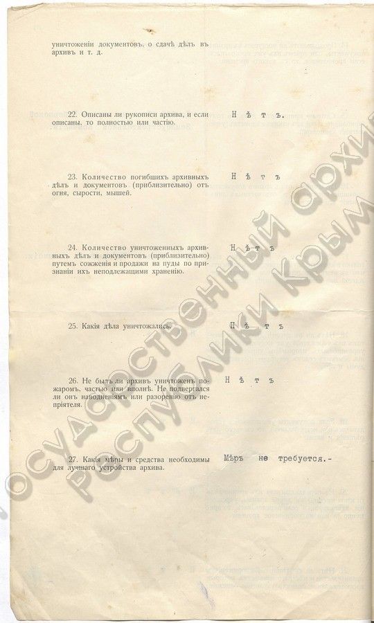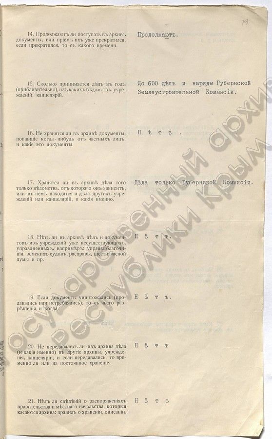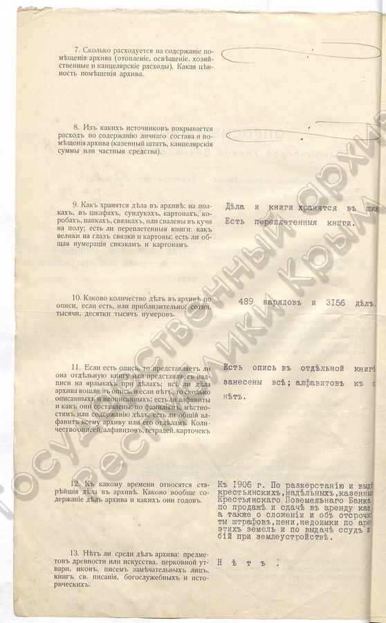 12. Опросный лист ТУАК заполненный Министерством земледелия (1916 г.)