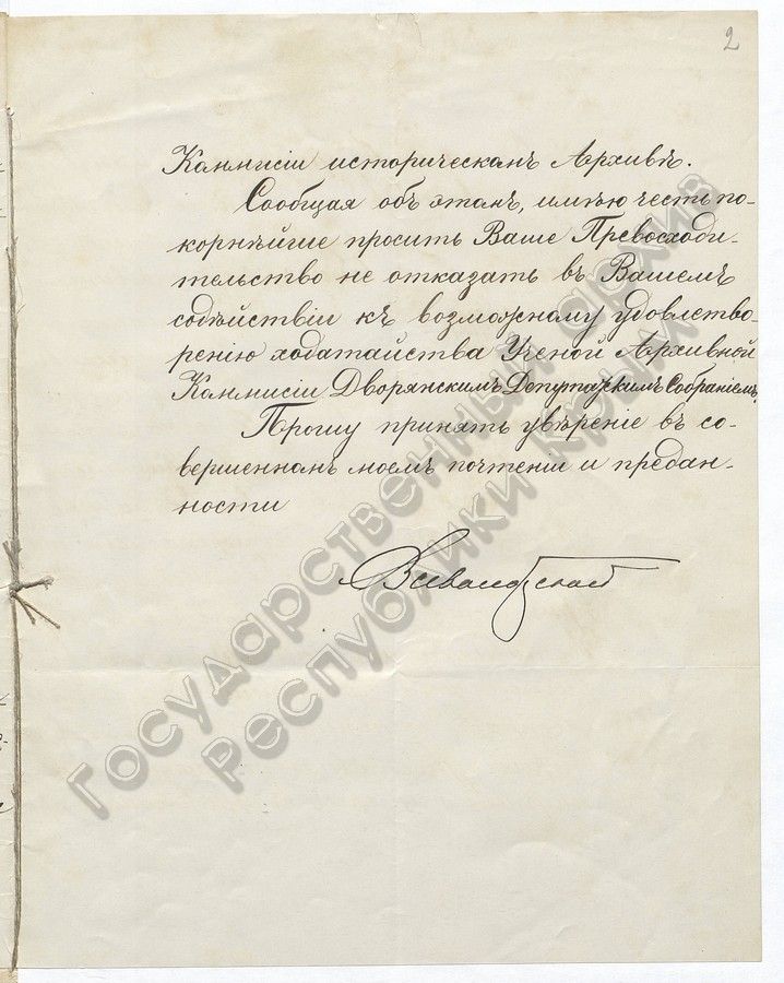 2. О разрешении членам помянутой Комиссии заниматься в архиве Дворянского Собрания и брать под расписку дела архива для просмотра (1889 г.)