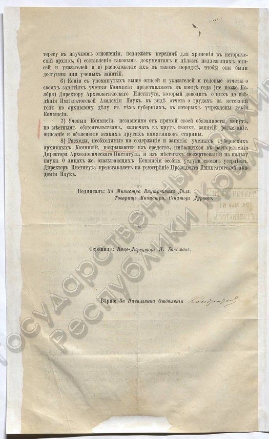 5. Положение Комитета министров «Об учреждении учёных архивных комиссий и исторических архивов» (1887 г.)