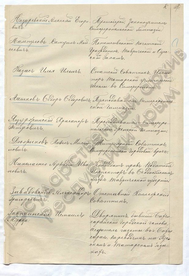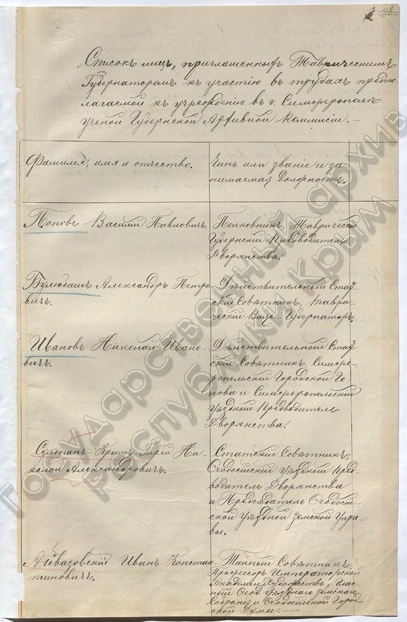 6. Список лиц, приглашенных Таврическим Губернатором к участию в трудах предполагаемой к учреждению в г. Симферополь ученой Губернской Архивной Комиссии (1887 г.)