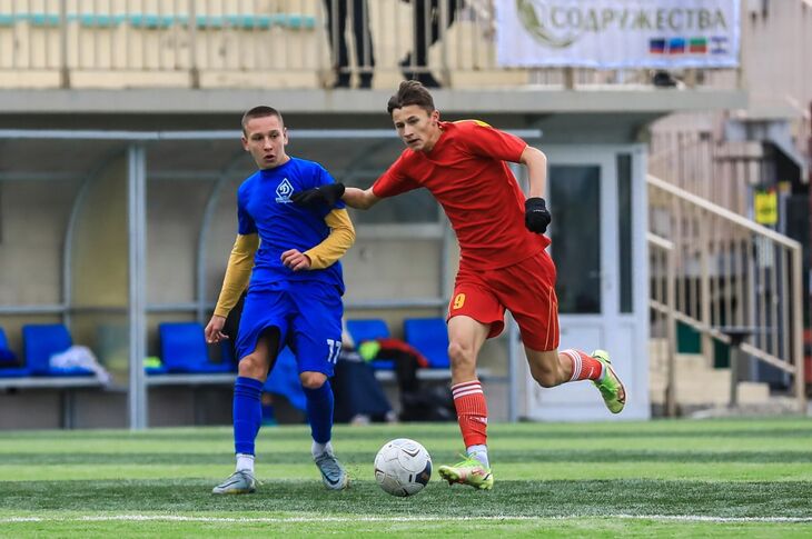 Первый день стыковых матчей на тестовом турнире Объединённого чемпионата по футболу «Содружество» среди юношеских команд 2007-2008 годов рож...