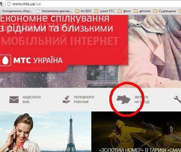 В 2015 году перед украинцами пришлось извиняться уже компании МТС Украина. Тогда на официальном сайте крупнейшего оператора мобильной связи в стране появилась иконка с картой Украины, на которой, как отметили пользователи, как-то недоставало крымского полуострова.