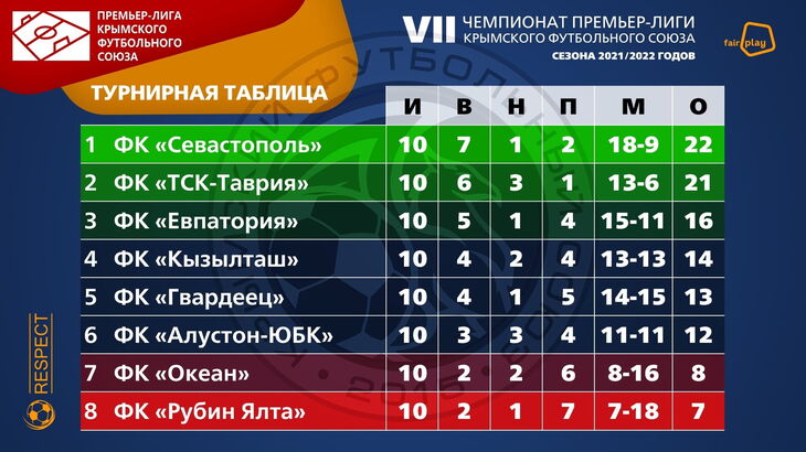 Турнирная таблица Премьер-лиги Крымского футбольного союза