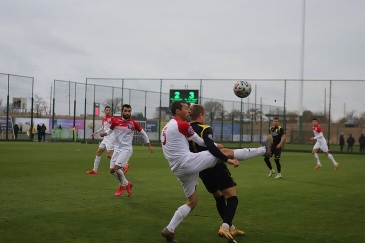 Первый тайм встречи, прошедшей в Новопавловке, не предвещал никакой сенсации. Команды голов так и не забили. А вот после перерыва за 15 минут номинальные хозяева поля трижды поразили ворота голкипера «Кызылташа» Рамзана Мутусханова.